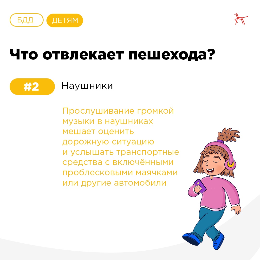 Во время движения откажитесь от использования мобильного телефона, наушников и других гаджетов
