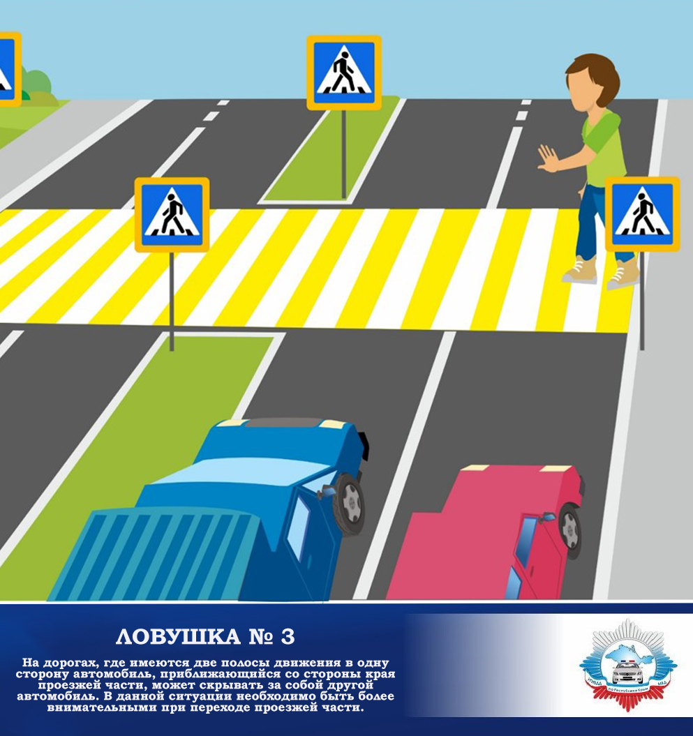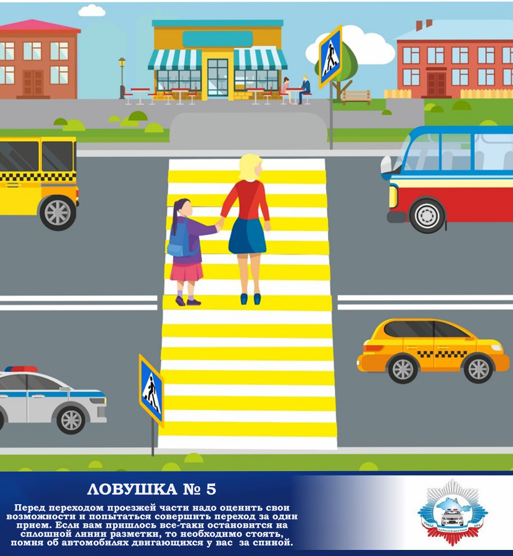 Переходите дорогу только по пешеходному переходу или на перекрестке.