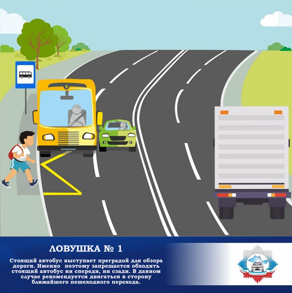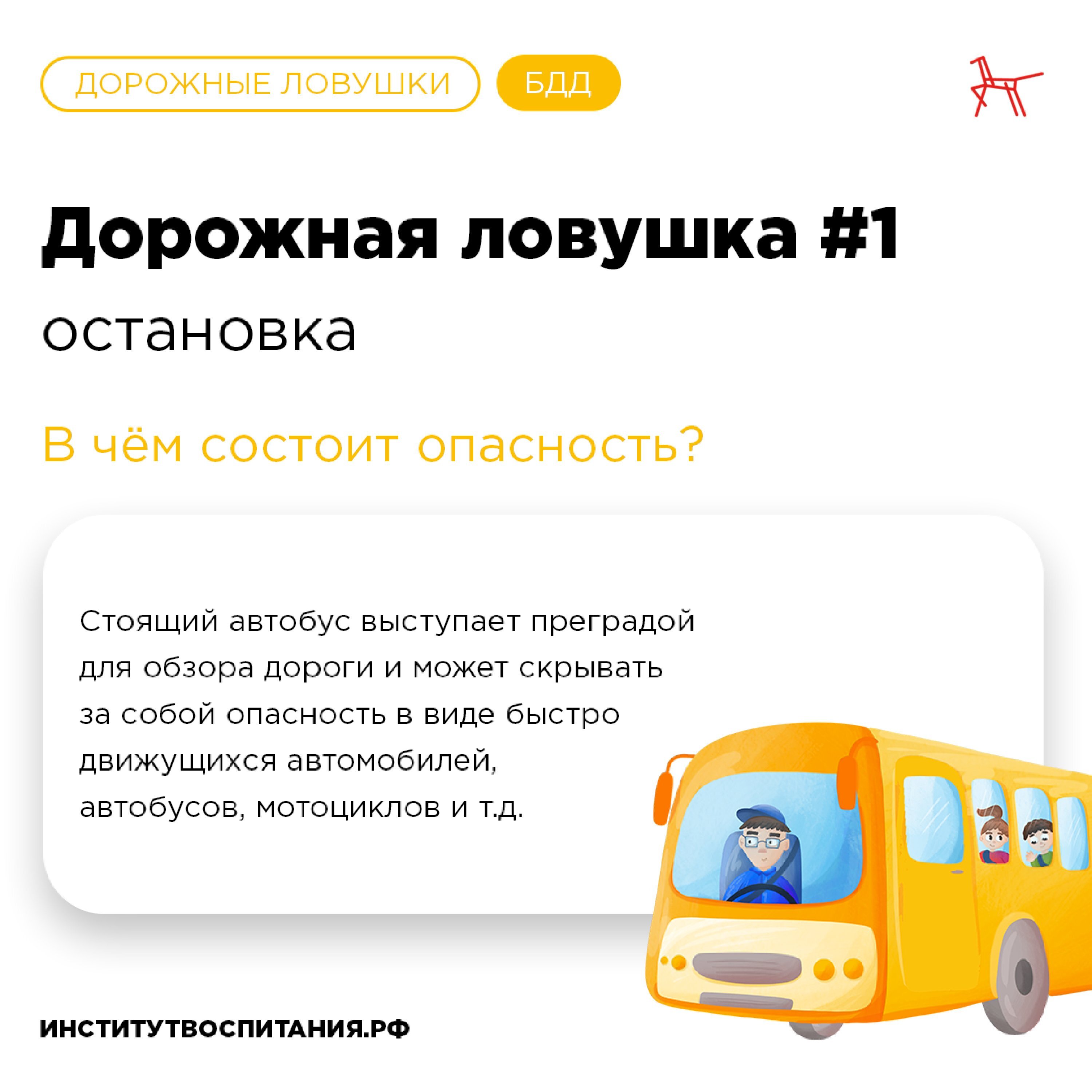 Приучите ребенка быть внимательным в зоне остановки – это опасное место (плохой обзор дороги, пассажиры могут вытолкнуть ребенка на дорогу).