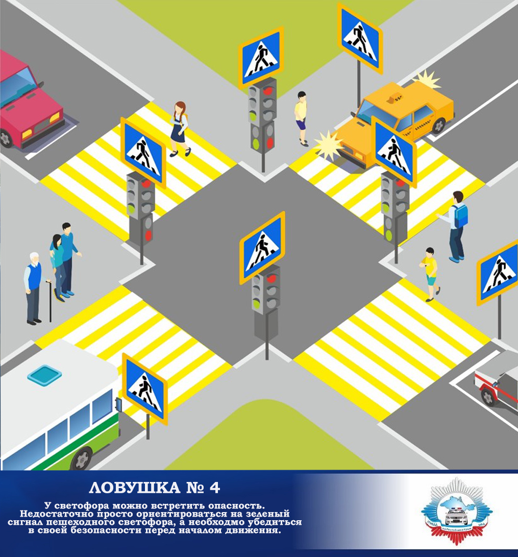 Идите только на зеленый сигнал светофора, даже если нет машин.