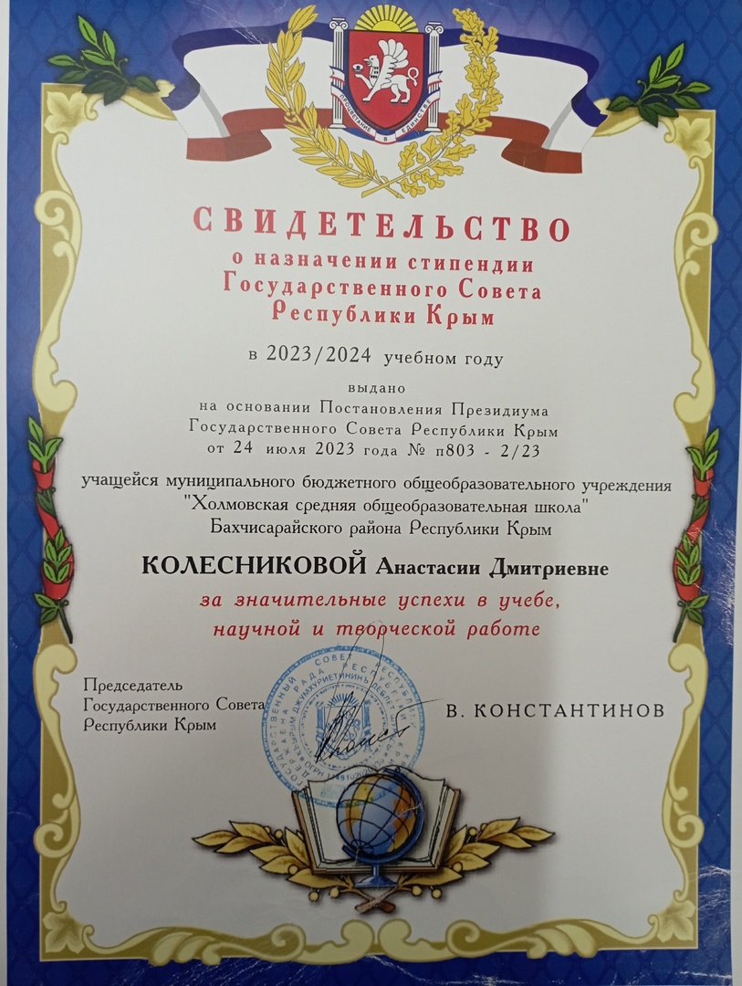 Муниципальное бюджетное общеобразовательное учреждение «Холмовская средняя общеобразовательная школа имени Луценко Алексея Алексеевича» Бахчисарайского района Республики Крым
