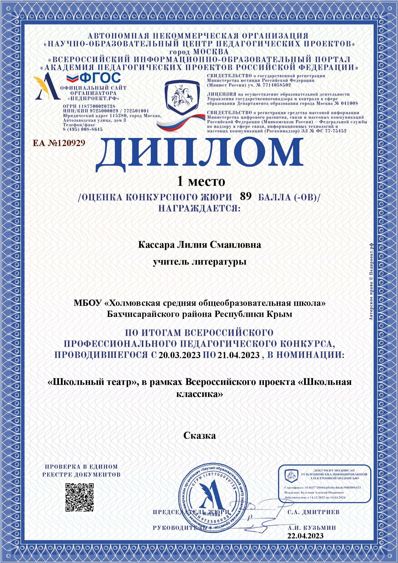 Муниципальное бюджетное общеобразовательное учреждение «Холмовская средняя общеобразовательная школа имени Луценко Алексея Алексеевича» Бахчисарайского района Республики Крым